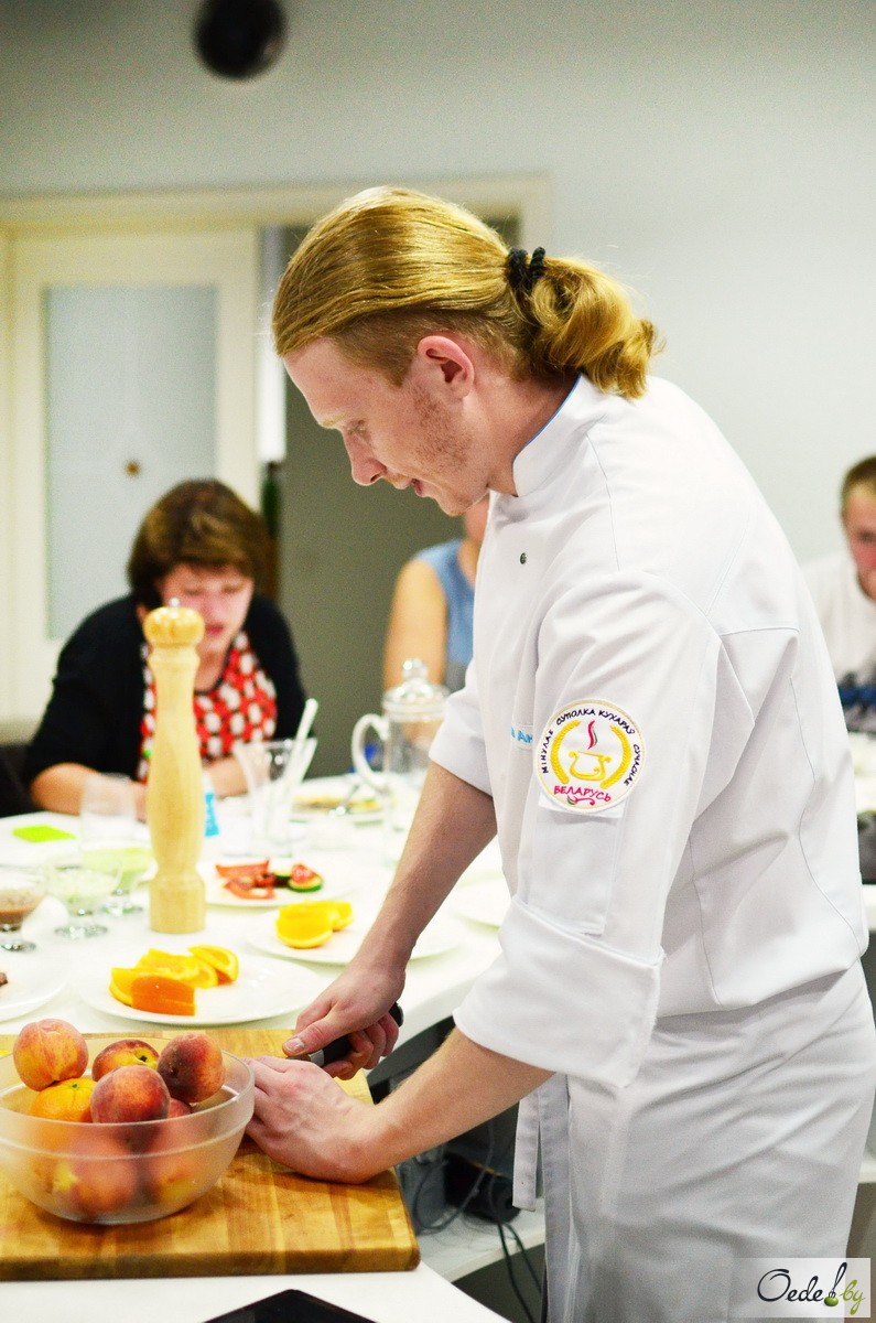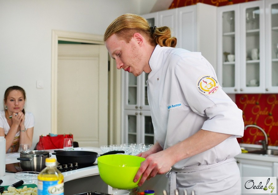 28 июня в Первой кулинарной школе Oede на улице Фабрициуса, 8, прошел мастер-класс шеф-повара ресторана «BierKeller», члена объединения «Суполка кухараў», Антона Кабанова.