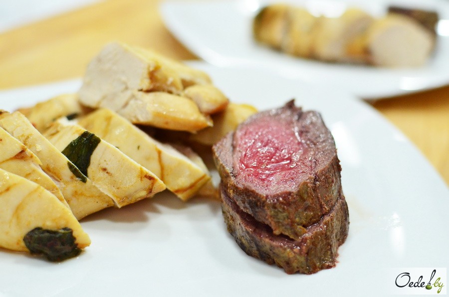 К соусам был подан ростбиф, печеное куриное филе, запеченная семга, печеные и свежие овощи, мороженое и фрукты. Сомнений нет, день удался!