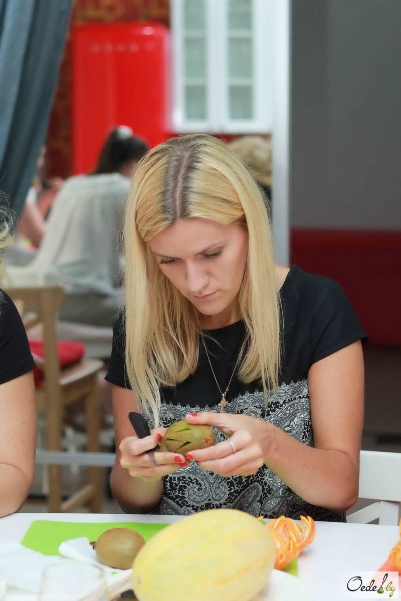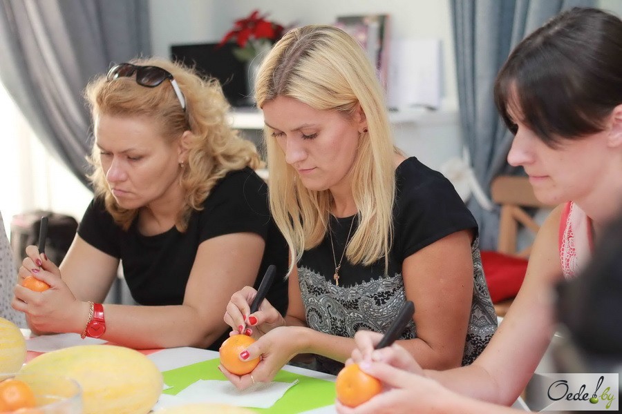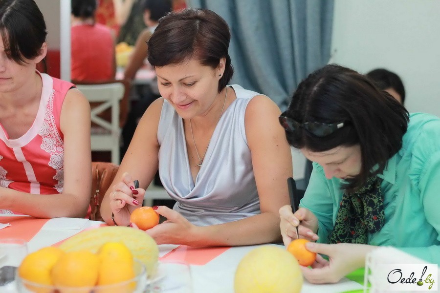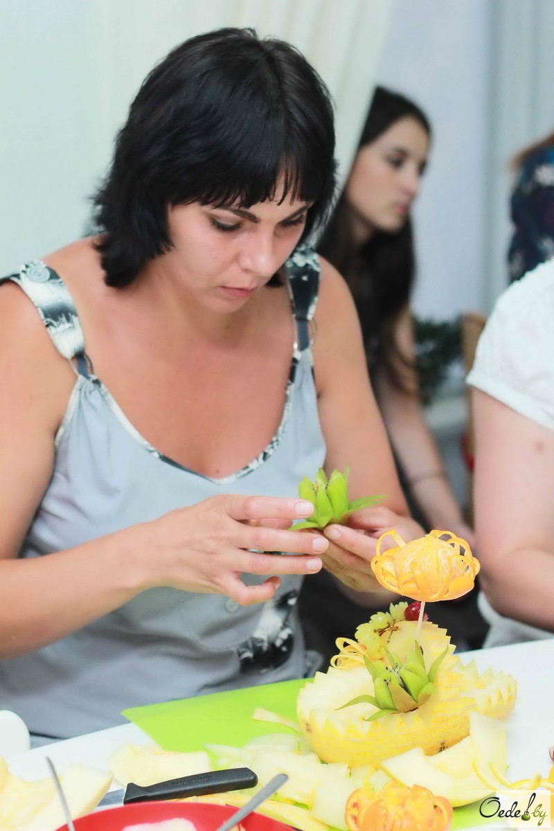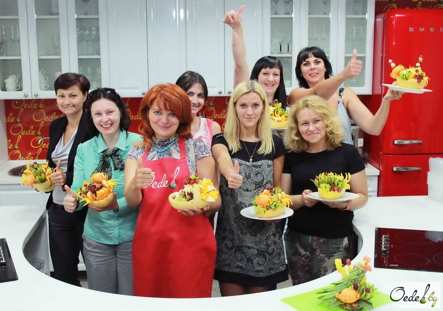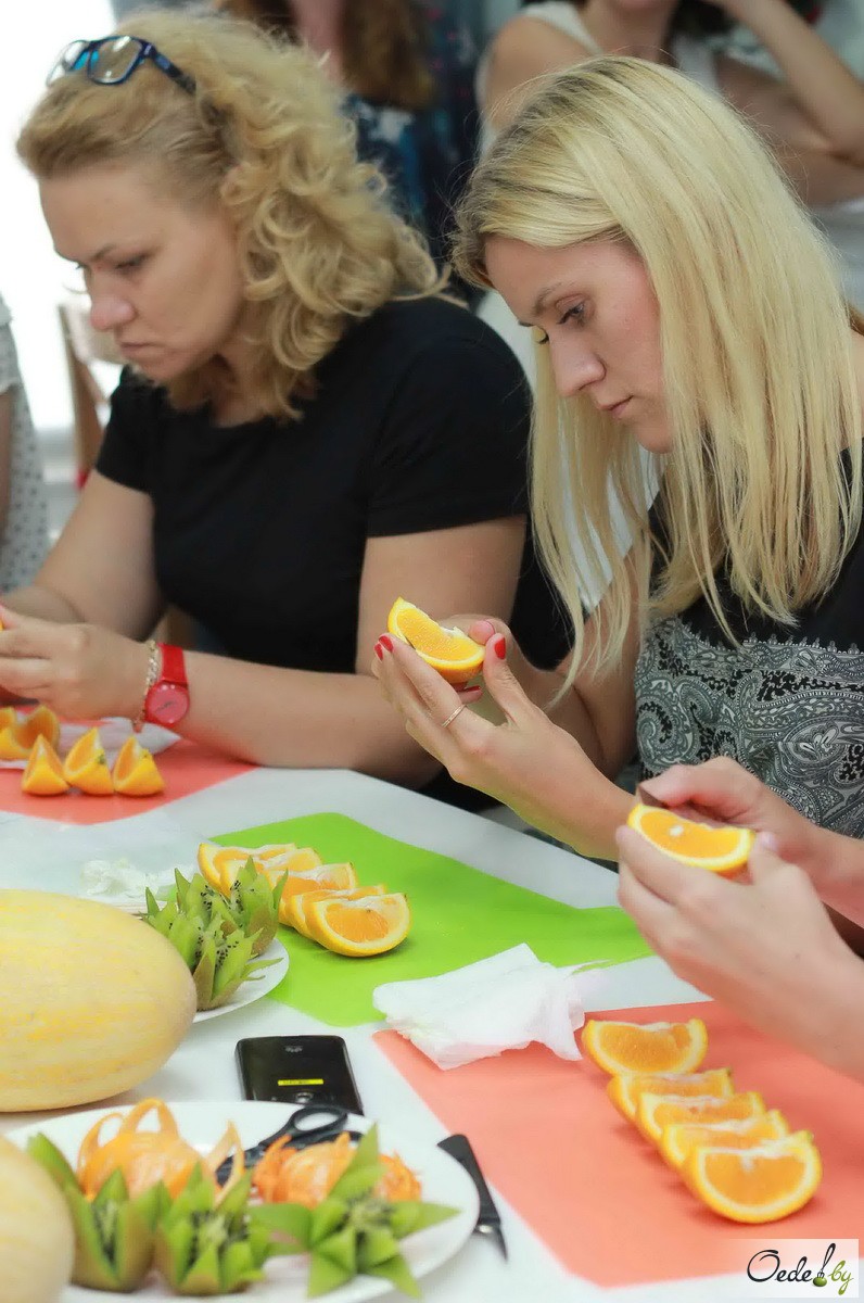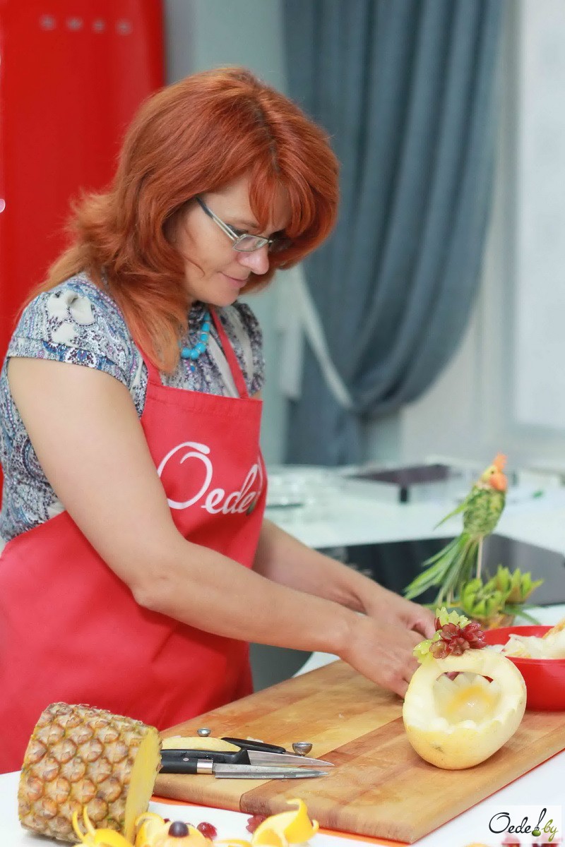 23 июля в Первой Кулинарной школе Oede на улице Фабрициуса, 8, прошел красочный мастер-класс с фруктовым ароматом под названием «Фруктовый букет». Это был Первый урок от Жанны Дятловой, специалиста в области карвинга, автора многочисленных кулинарных книг.