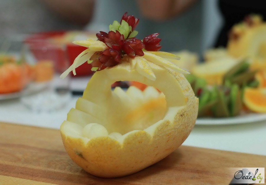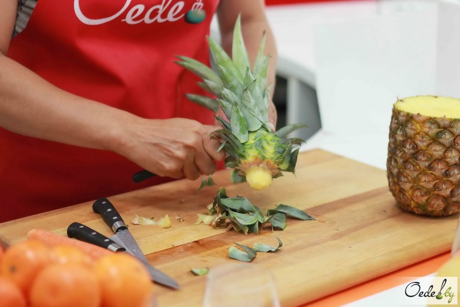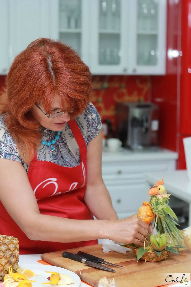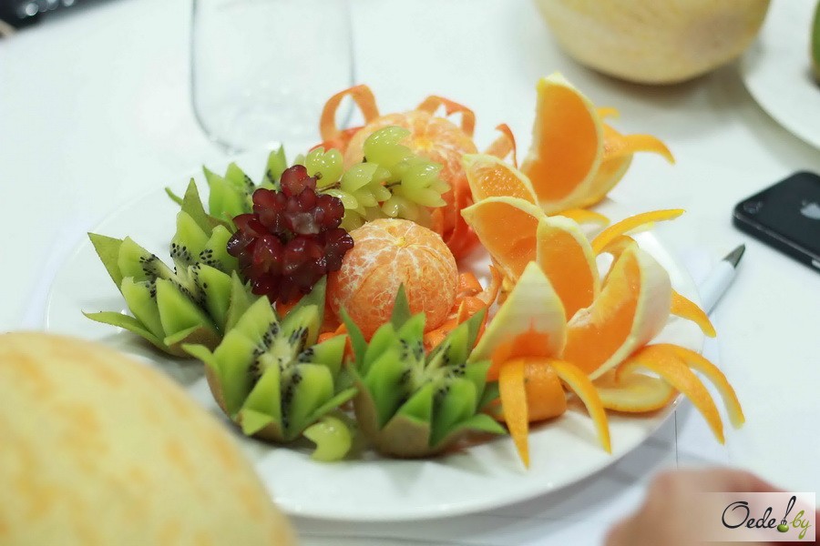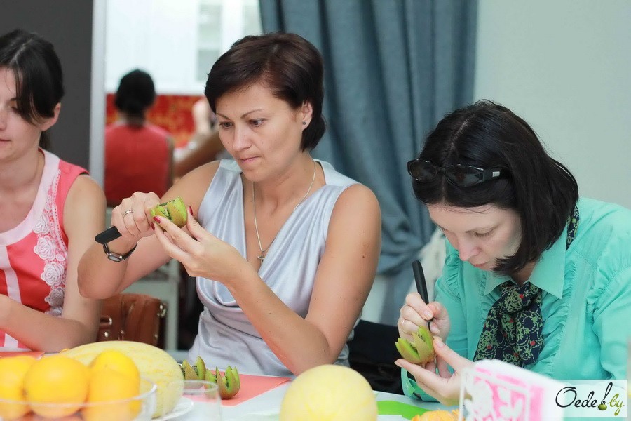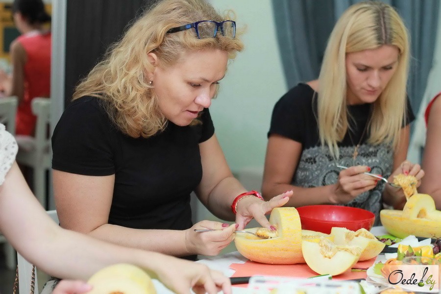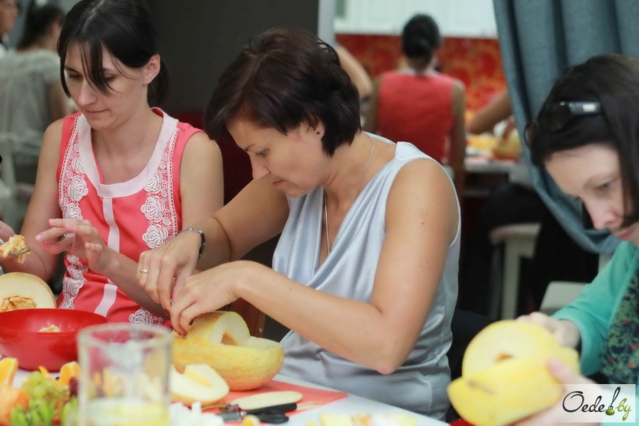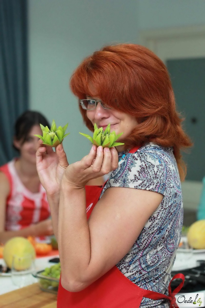 23 июля в Первой Кулинарной школе Oede на улице Фабрициуса, 8, прошел красочный мастер-класс с фруктовым ароматом под названием «Фруктовый букет». Это был Первый урок от Жанны Дятловой, специалиста в области карвинга, автора многочисленных кулинарных книг.